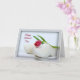 Rote Tulpe des Singles auf hölzernem Schuh für den Tag der Mutter.