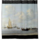 Wunderbare Vintage Malerei der feinen Kunst einer Segeln-Yacht vor der Küste in Holland in einer Ruhe und in einem Boot, die vom Strand kommen, ist auf diesem Duschvorhang. Bild ist das public domain wegen des abgelaufenen Copyright.