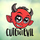 Vector Cartoon Illustration eines teuflisch niedlichen kleinen Teufels mit großen Augen mit Niedlichen aber bösen Text. Schlüsselwörter: Teufel, Hölle, niedlich, Dämon, Böse, Satan, Halloween, Monster, Hörner, Horror, bezaubernd, süß, teuflisch, teuflisch, wertvoll, liebenswert, liebenswert, reizend, anziehend, anziehend, reizvoll, lieblich, lieblich, lieblich, wütend, charmant, bezaubernd, hübsch, Adorbs
