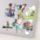 Sechs bezaubernde Feen in niedlichen Posen mit dem Wort "Fairy World" für einen Aufkleber.
