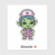 Bringen Sie eine Touch intergalaktischer Pflege in Ihre Sammlung. Auf diesem Aufkleber befindet sich eine niedliche kleine Alien-Krankenschwester in einer Uniform mit einem Stethoskop um ihren Hals. Ideal für Laptops, Wasserflaschen oder Notebooks, ist es eine lustige Art, Ihre Liebe für Gesundheitshelden und alles Außerirdische zu zeigen.