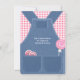 Niedlich als Knopfdusche für Babymädchen. Country Denim Overalls mit rosa Gingham Shirt und einem Lollipop in der hinteren Hosentasche, Baby Dusche Einladung. Ideal für kleine Mädchen, Bauernhofthemen oder rustikale Babyduschen.
