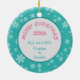 Ein zauberhaftes, kleines graues und rosa Kätzchen trägt eine Schneeflocke und einen Schal, während aquamarine, helle Schneeflocken um sich herabdriften. Unten befindet sich der Name Ihres Kindes in passendem Rosa, und alles wird auf einem weißen Hintergrund platziert. Die Rückseite des Ornaments hat einen aquamarinen Schneeflockenmusterrahmen, in der Mitte befindet sich ein weißer Kreis, in dem sich Ihr eigener Text in vier Bereichen befindet. Leicht zu anpassen, und jedes kleine Mädchen würde diese Keepsake-Ornament Liebe!