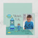 Niedlicher Astronaut mit Rakete auf dem Planeten im Weltraum Junge Vielen Dank für die Geburtstagskarte. Junge Astronaut auf einem Planeten mit einem Raketenschiff. Laden Sie Ihr Foto hoch und personalisieren Sie die Karte mit Ihrem Namen und Text. Großartig als Geburtstag danke dir Karte für Jungs.