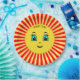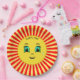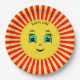 Niedlich aufsteigende Sonne glückliches Gesicht und rot-gelbe Strahlen Papier Platten. Text kann personalisiert sein. Ideal für Geburtstage, Babyduschen und alle anderen Party-Feiern oder einfach nur zum Spaß!