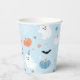 Niedliche Baby-Blue Geist Halloween Papier Tasse. Modernes Halloween-Design für ein unheimliches Party! Diese Papiertasse enthält Spinnennetze, Gespenster, Kürbisse, Fledermäuse, Spinnen, Blätter, Mais, Sterne und Gänseblümchen. Diese Papiertasse ist großartig für die Geburtstagsparty eines kleinen Jungen!