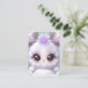 Die niedliche Babybridgrafik ist umgeben von weißen und lila Wimpern auf einem Blatt Hintergrund.