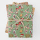 Diese niedlichen Papierbögen weisen ein sich wiederholendes Muster niedlicher Babykäse "großer Katzen" in Weihnachtsmannmützen auf, die mit Weihnachtsbäumen, Kränzen und Schneekanälen vermischt sind. Eine der Babykatzen hält ein Weihnachtsgeschenk. Diese Urlaubsgeschenkpackung kommt in einem Set von drei Safari-ähnlichen Farben von Vintagen Salbei grün, braun und hellbraunen, russet orange-braun.