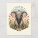 Niedlich Baby Elephant Calf Wildblume Wanderlust P Postkarte