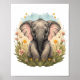 Niedlich Baby Elephant Calf Wildblume Wanderlust Poster