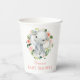 Dieses Design ist eine hübsche Papiertasse für ein Baby-Duschfest und bietet einen grauen Elefanten in sanften Aquarelltönen, umgeben von einem Kranz aus rosa und weißen Rosen und Grünpflanzen. Personalisieren Sie mit dem Ehrengast oder einem anderen gewünschten Text.