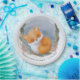 Gemütliches winterfarbenes Design mit modernem handgeschriebenem Style-Skript, orangefarbener niedlicher Schlafbabyfox auf schneebedecktem Hintergrund. Der Text kann leicht für ein einzigartiges Design für Ihren besonderen Tag personalisiert werden.