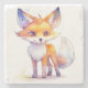 Ein sehr niedlicher Untersetzer aus Stein mit einer Illustration eines lächelnden Babyfuchs.