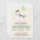 Niedliches Baby-Zebra mit pastellgrünem Ballon, neutraler Junge oder Mädchen-Dusche Einladung. Dieses niedliche Retro-Ambiente lädt zum Wohlfühlen ein, zum Babyduschen oder zum Sprinkle wechseln. Niedliches, einfaches, schlichtes Design. Die Zebra in Schwarz und Weiß, das Band und die Herzen, der braune Schriftart und der cremefarbene Hintergrund. Ideal für Dschungeltiere, Zootiere oder Safari-Thema Babydusche oder Sprinkle!