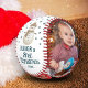 Niedlich Baby's 1. Weihnachtsschneemann 2 Foto Baseball. Ein gemütliches Weihnachtsbaseball mit niedlichem zeichn eines niedlichen Schneemanns und 2 maßgeschneiderten Fotos. Schneeflocken sind im Baseball verstreut und sorgen für eine Touch Winterzauber. Der Text "First Christmas" ist in elegantem Schriftsatz. Das ästhetische Ganze strahlt ein warmes, rustikales und modernes Bohemisches Ambiente aus, das sich perfekt für einen stilvollen und dennoch festlichen Urlaub eignet. Fügen Sie Ihre Fotos, den Namen des Babys und das Jahr hinzu.