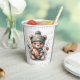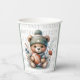 Maßgeschneiderte Papiertassen haben ein Fußballthema mit einer femininen Touch. Modernes Design mit Blume und einem niedlichen Bären, der einen Fußball hält. Passen Sie den Text auf den Bechern mit Ihrem gewünschten Namen oder Ihrer gewünschten Phrase an. Ideal für Fußballfans und die Gastgeber einer Fußballveranstaltung. Verwenden Sie die Vorlage, um eigene, benutzerdefinierte Papierbecher zu erstellen.