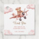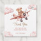 Dieses niedliche Baby Dusche Gunst Tag mit einem Mädchen Teddy Bären fliegen ein Flugzeug zwischen flauschigen Wolken mit dem Text "Danke" und personalisiert mit Ihrem eigenen Text.