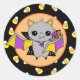 Niedlicher Cartoon Bat Holding Halloween Candy Classic Round Sticker.