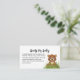 Mit unserer Niedlichen Bear Safari Theme Baby Shower Book Request Enclosure Card stärken Sie Ihre Babydusche. Dieses liebenswerte Design zeigt eine bezaubernde Aquarellillustrierung eines bezaubernden Bären in einer Safari-Umgebung und schafft ein reizvolles und geschlechtsneutrales Thema, das sowohl für Jungen als auch für Mädchen geeignet ist. Die moderne Babydusche, kombiniert mit dem Drehbuch-Schriftart und Blumenakzenten, verleiht Ihrem Einladungssemble eine Touch Eleganz. Ermutigen Sie von Anfang an eine Liebe zum Lesen mit unserer Niedlichen Bear Safari Theme Baby Shower Book Request Enclosure Card. Die Nachricht "Bring ein Buch für Baby" lädt die Gäste dazu ein, ihre Lieblingsgeschichten aus der Kindheit beizutragen und so ein einzigartiges und nachdenkliches Geschenk für die Kleinen zu schaffen. Diese Alternative zu den traditionellen Karten ist eine stilvolle und hochmoderne Wahl, die sich mit zeitgenössischen Trends in Einklang bringt und den Gästen eine unvergessliche Möglichkeit bietet, an den Feierlichkeiten teilzunehmen. Feiern Sie die bevorstehende Ankunft Ihres Kleinen mit dem minimalistischen und charmanten Design unserer Niedlichen Bear Safari Theme Baby Shower Book Request Enclosure Card. Die Baby-Bären-Illustration, Set vor dem Hintergrund eines Safari-Abenteuers, fügt eine skurrile Touch zu Ihren Baby-Dusche-Einladungen. Egal ob Sie eine Babydusche, eine Babydusche, eine Babydusche oder eine geschlechtsneutrale Veranstaltung beherbergen, diese süße und einfache Buchanforderungskarte ist die perfekte Ergänzung zum Set eines unvergesslichen Festes.