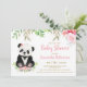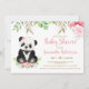 Adorable niedliche rot rosa Blüte, rosa Blume Grün eucalyptus Aquarell Blätter, botanisch, Salbei Grün Blätter, Golden Blatt, Baby Panda Bär, können wir frühzeitig warten! Es ist eine Einladung für die Mädchen-Babydusche. Sie können diese süße Einladung mit Ihrem eigenen Text anpassen