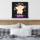Adorable Valentine Canvas Print mit einem niedlichen Teddy Bärenpaar umarmt einander, rosa kleine Herzen und Schmetterlinge, und das Wort "Liebe" auf schwarzem Hintergrund. Sie können die Hintergrundfarbe nach Belieben ändern.