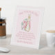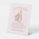 Sweet Beatrix Potter Tischschild, das auf Ihrem Baby-Duschtisch angezeigt wird, um Ihre Gäste über das lustige Schnuller-Spiel zu informieren. Weich rosa pastellfarbener Gingham Hintergrund. So süß es auch für ein Baby-Duschspiel sein kann, und dieses Podest fügt jedem Event ein weiteres dekoratives Festspiel hinzu.