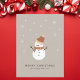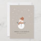 Diese bezaubernde Weihnachtskarte zeigt einen niedlichen Schneemann in einem gemütlichen Schal und Hut, umgeben von zarten Schneeflocken. Set vor einem weichen beige Hintergrund, das Design ist ideal für einen herzlichen Urlaub Grüße und wünschen ein frohes Weihnachten und Glück Neues Jahr. Die bezaubernde Illustration und die moderne Einfachheit machen diese Karte zu einer reizvollen Art, den saisonalen Beifall zu verbreiten.