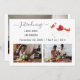 Einfache, elegante und niedliche neue Babyankündigungskarte mit drei Fotos, die Texte "Einführung" + der Name des Neugeborenen + seine Geburtsdaten + "Begrüßung mit Liebe von" + die Namen der Eltern. Stellen Sie sicher, dass Sie alle Informationen anpassen. Diese Karte enthält eine Abbildung mit einem knienden Einhorn mit goldenem und rotem Glitzer in Mane und Schwanz und einem niedlichen schwarz / dunkelhäutigen Baby in roter Bassinette. Für verschiedene Hautfarben des Babys in der Bassinette im Einhorn-zeichn, siehe diese Sammlung: https://www.zazzle.com/collections/new_baby_birth_announcements-119644425584602730