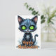 Niedlich Black Kitten Halloween Whimsical Cat Love Postkarte