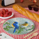 Niedlich Blaue Gelbe Vögel Kirsche Blossom Wasserf Pappteller