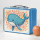 Ein sehr niedlicher Blauwal mit orangefarbenem, blumengeschmücktem, Wirblem Hintergrund macht aus einer köstlichen Kids-Lunchbox für Jungen oder Mädchen.