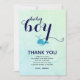 Diese bezaubernde Babydusche zum Thema Ozean mit Dankeschön-Karte zeigt einen niedlichen blauen Wal, der Herzen auf hellblauem Hintergrund sprüht, mit den Worten "Baby" in Marineblau. Die Karte enthält auch den Namen der künftigen Mutter, wodurch dem Design eine persönliche Touch hinzugefügt wird. Auf der Rückseite der Karte, ein bezauberndes Muster von Blauen Walen noch weiter verbessert das Thema Ozean, die Schaffung eines kohärenten und reizvollen ästhetischen. Diese hübsche und charmante Karte ist ideal, um sich bei den Gästen, die die Babydusche besucht haben, zu bedanken und verlasse einen bleibenden Eindruck.