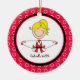Das ist ein bezaubernder Weihnachtsschmuck für den Cheerleader in deinem Leben! Es ist ein niedlicher Knüppelführer . Sie trägt eine rot-weiße Uniform. Der Hintergrund ist rot mit weißen Kreisen. Sie springt in die Luft und macht eine Touch Zehenspitzen. Karo aus den vielen anderen Designs und Farben in dieser Linie. Bewahren Sie diesen Sake für viele, viele Jahre! ©JW Illustrations