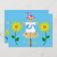 Niedliche Blonde Pigtails Scarecrow mit großen Sonnenblumen, um durch den Umbenennen Ihres Namens in jeder Hintergrundfarbe