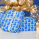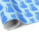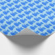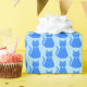 Dieses phantastische Verpackungspapier zeichnet sich durch ein digitales Kunstbild einer niedlichen blauen Katze mit einem geschmeidigen Schwanz aus. Seine Augen sind blass blau mit schwarzen Schülern. Er trägt einen rosa Bogen im Haar und einen leuchtenden blauen Kragen um den Hals mit einem blauen Jeton darauf. Das Design ist perfekt für die Feier eines Baby Boy.