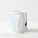 Diese phantastische Tasse zeigt ein grafisches Bild eines niedlichen Weißstorches mit schwarzen Schwanz-Federn, die auf einem hellblauen Bündel von Decken haften. Es gibt einen blauen Text auf dem Bundle, der "Baby Boy" sagt. Dieses Design eignet sich perfekt, um einen kleinen Jungen zu feiern.