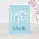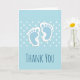 Vielen Dank Karte mit einem charmanten Bild von den Fußabdrücken des blauen Babys mit einer schweren weißen Kontur. Weiße Polka zeigt einen babyblauen Hintergrund hinter der Abbildung. Personalisierte Nachricht im Inneren. Perfekt für neue Baby, oder Baby Dusche dank Karten.