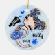 Niedliche, stilvolle und Girly fröhliche Weihnachtsbaumschmuck. Blaue Teamfarben. Mit einem Cheerleader Mädchen mit braunem Haardesign und einem Aquarellblau-Hintergrund. Mehr Teamfarben sowie Haar- und Hautfarben sind in meinem Shop erhältlich. Passen Sie Ihren Namen und das Jahr an. Große Geschenke und Beistand für Cheerleader, Cheer Teams und Coaches.