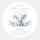 Niedlich Blue Floral Elephant Baby Boy Dusche Runder Aufkleber