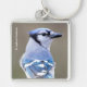 Niedlich Blue Jay Songbird auf Treestump Schlüsselanhänger