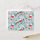 Ein japanisches Sushi-Muster aus Kawaii auf blauem Hintergrund schmückt diese Postkarte. Das Muster umfasst Sushi, Reisschalen, Sojasoße, Stäbchen und mehr... Ein lustiges Muster für Sushi-Liebhaber. Entworfen für Sie von BlackBerry Boulevard.