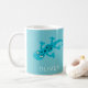 Niedlich Blue Lizard Gecko Name Tasse für Kinder. Der Gecko ist blau und hat dunkle Flecken. Der Hintergrund ist hell blau. Personalisieren Sie mit Ihrem Namen. Ideal für Kinder, die Geckos und Tiere Liebe haben.