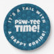 Neue Haustiereltern können ein bezauberndes Adoption-Party für die neueste (vierbeinige) Ergänzung der Familie mit diesen skurrilen Tellern werfen, die die Meldung "Päw-tee-Zeit! Es ist ein Schwanz mit einem Happy Ending" in einer lustigen, fesselnden Schrift, mit einem sich wiederholenden Muster leuchtender Pfoten auf einem dunkelblauen Hintergrund. Design © W.H. Sim, Alle Rechte vorbehalten. Weitere Informationen unter zazzle.com/expressionsoccasions