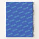 Dieses niedliche Notizbuch zeichnet sich durch ein farbenfrohes Namensmuster in modernen, kursiven Schriften in blau aus.
