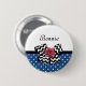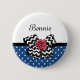Mit diesem niedlichen, blau-weiß gestrichenen Punktmuster-Knopf mit Zickzack schwarz-weiß-weißem Bogen und einer schicken roten Band-Rose steigern Sie Ihren Girly-Stil. Dieses blaue und rote Retro trifft auf modernes Design kann personalisiert werden, indem Sie den Namen Ihrer Teenager. Flachdruckbild, KEIN tatsächliches Rosettenband und Bogen.
