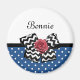 Mit diesem niedlichen blau-weißen Polka-Dot-Magneten mit einem trendigen Zickzack-schwarz-weißen Bogen und einer schicken roten Band-Rose stärken Sie Ihren Girly-Stil. Dieses blaue und rote Retro trifft auf modernes Design kann personalisiert werden, indem Sie den Namen Ihrer Teenager. Flachdruckbild, KEIN tatsächliches Rosettenband und Bogen.