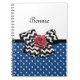 Mit diesem niedlichen, blau-weiß gestrichelten Pollka-Dot-Notizbuch mit einem Zickzack-schwarz-weißen Bogen und einer schicken roten Band-Rose stärken Sie Ihren gürtlichen Stil. Dieses blaue und rote Retro trifft auf modernes Design kann personalisiert werden, indem Sie den Namen Ihrer Teenager. Flachdruckbild, KEIN tatsächliches Rosettenband und Bogen.