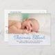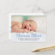 Elegantes Script Name Blue Baby Baby Baby Boy Foto Geburtshaus Ankündigung Postcard mit personalisierten Dankeschön-Nachricht auf der Rückseite für die Unterstützung und Geschenke.