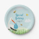 Auf der niedlichen Babyduschpapiertafel befindet sich ein handgezogener Storch, der eine spezielle Lieferung mit Bienen und Schmetterling auf der Wiese trägt. Der Blaustorch macht die besondere Lieferung eines Babyjungen. Feiern Sie die Ankunft des neuen Baby Boys mit dieser niedlichen Storch Baby Sprinkle Boy Papiertüte. Personalisieren Sie die Babyduschplatte mit Ihrem Text und Ihrer Info.