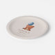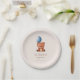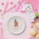 Niedlicher Bär mit einem blauen Ballon Babydusche Papier Teller in einer rustikalen boho Farbe Palette. Perfekt für ein "wir können frühzeitig warten" Thema Feiern. Illustriert und entworfen von Patricia Alvarez.